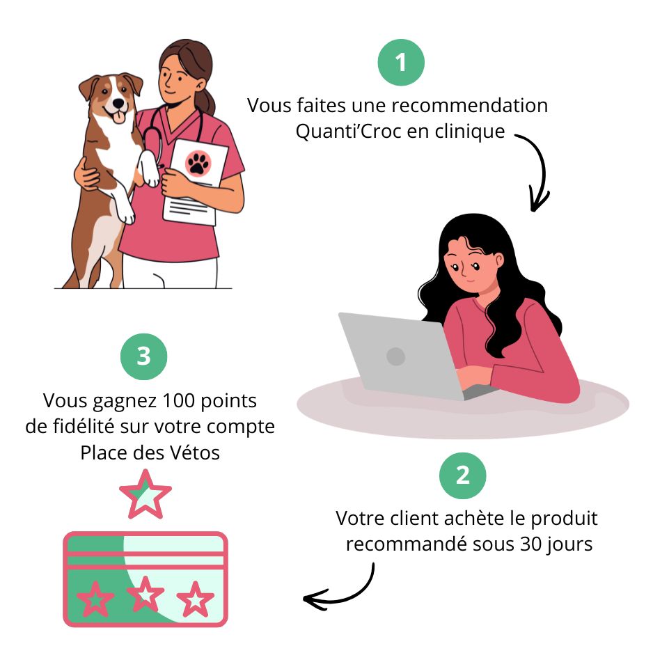 Votre récompense ? Pour chaque produit recommandé acheté sous 30 jours, 100 points de fidélité seront crédités sur votre compte personnel Place des Vétos à partir du 01 août 2026.