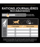 Protéines 27 %, matières grasses 12 %, glucides 43 %, cellulose brute 2,5 %, cendres brutes 7,5 %, Oméga-6 2,3 %, acide linoléique 2 %, Oméga-3 0,3 %, DHA 0,08 %, EPA + DHA 0,25 %.